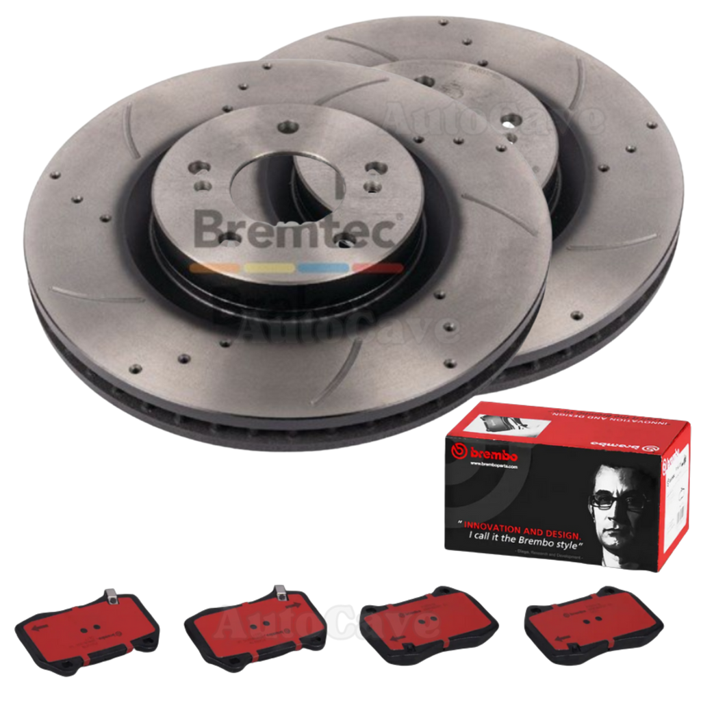 - 2x Bremtec Evolve F2S slotted and drilled directional brake disc rotors (324mm diameter)