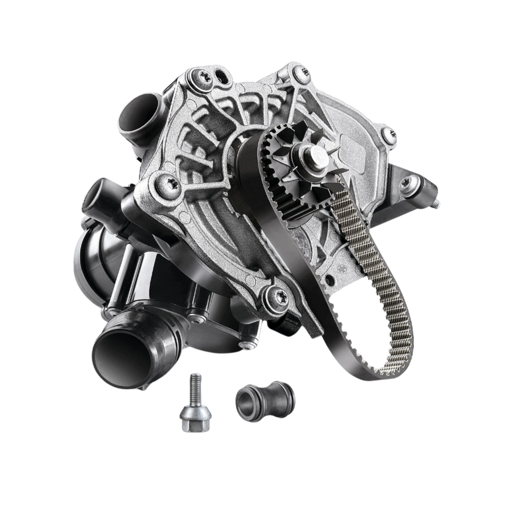 INA water pump kit. Includes thermostat housing assembly, junction block and water pump belt as well as o rings. INA is an OE manufacturer and this pump is made in the Czech Republic.