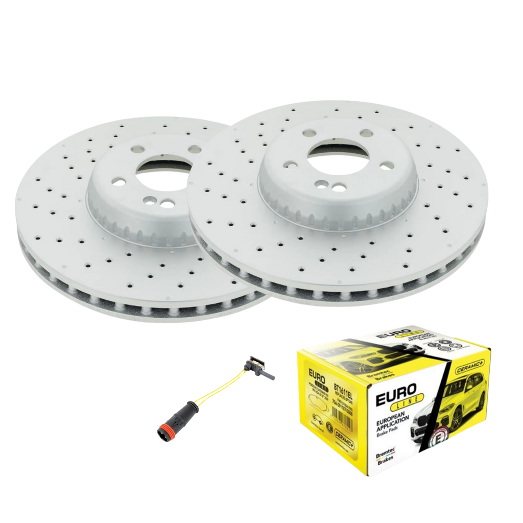Front 342mm Bremtec Euroline Rotors (2) to suit the below Mercedes-Benz with factory AMG upgrade (Drilled 342mm rotors front from factory with standard flat faced rear rotors.